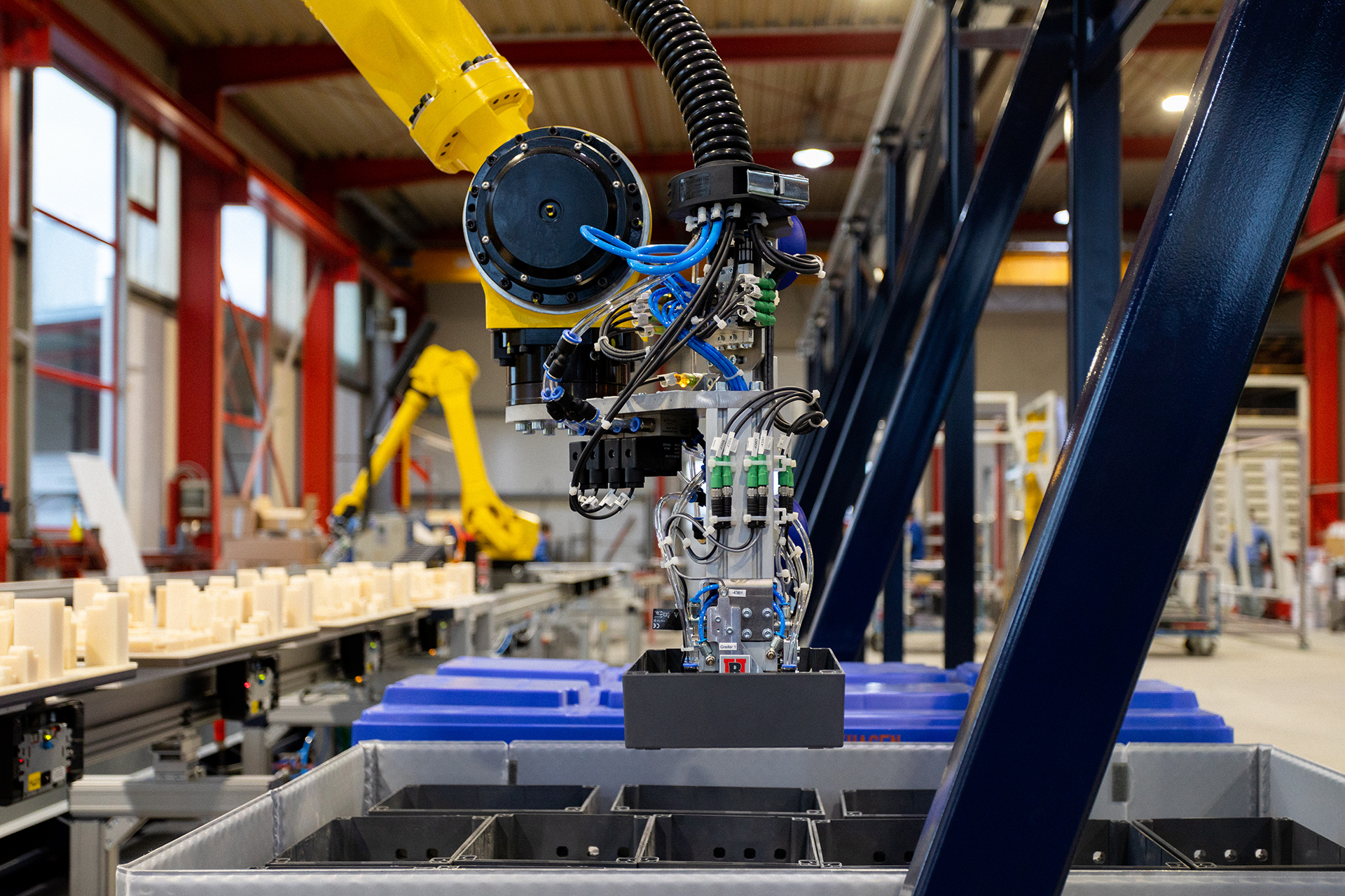 - Effizientes Stapeln und Entstapeln – lagegenau, schonend und taktsynchron, auch bei schwer zugänglichen Geometrien